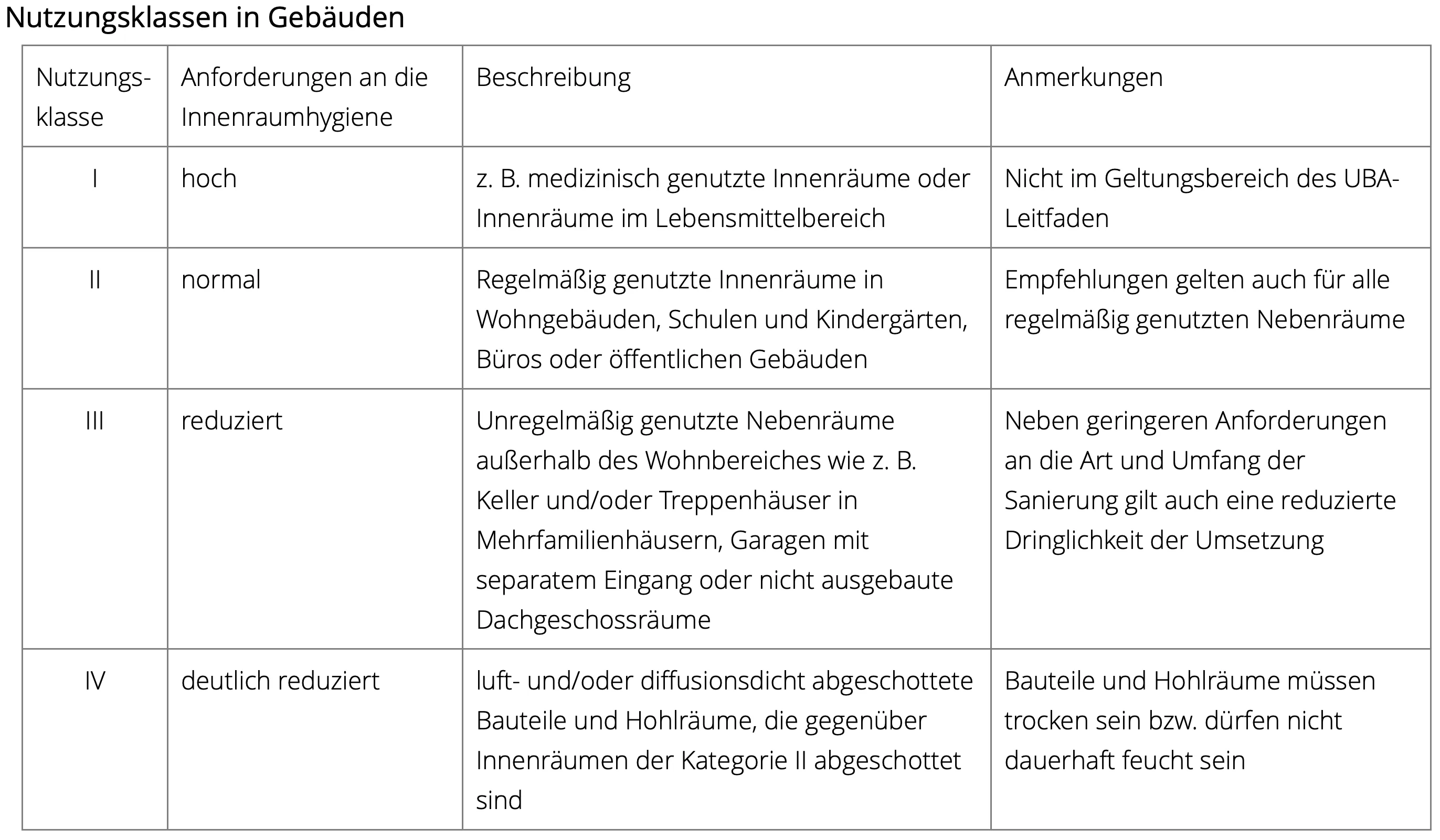 Nutzungsklassen: Grundlagen jeder Schimmelsanierung in Innenräumen